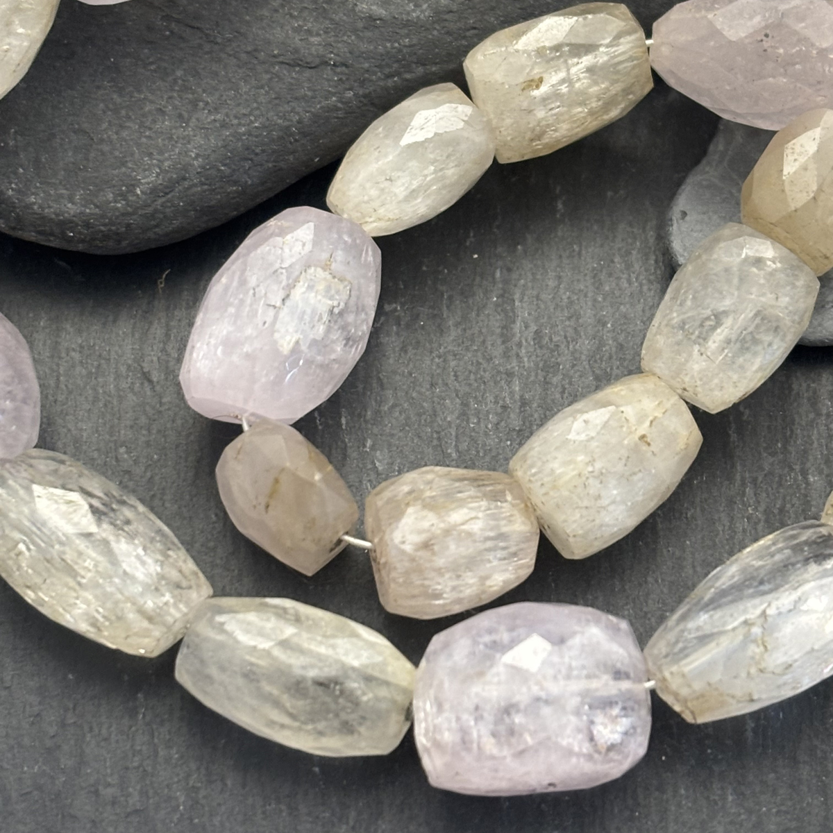This is a Very Rare Beautiful Organic Hand Cut strand of Kunzite. Sizes Vary between 10mm x 10mm and 13mm x 16mm. Kunzite is known as the “Stone of Divine Love,” symbolizing unconditional love, emotional healing, and spiritual connection, often linked to the heart chakra for opening the heart to give and receive love, releasing trauma, and promoting inner peace and self-love, with its gentle pink-to-violet hues reflecting its gentle yet powerful energy for emotional well-being.